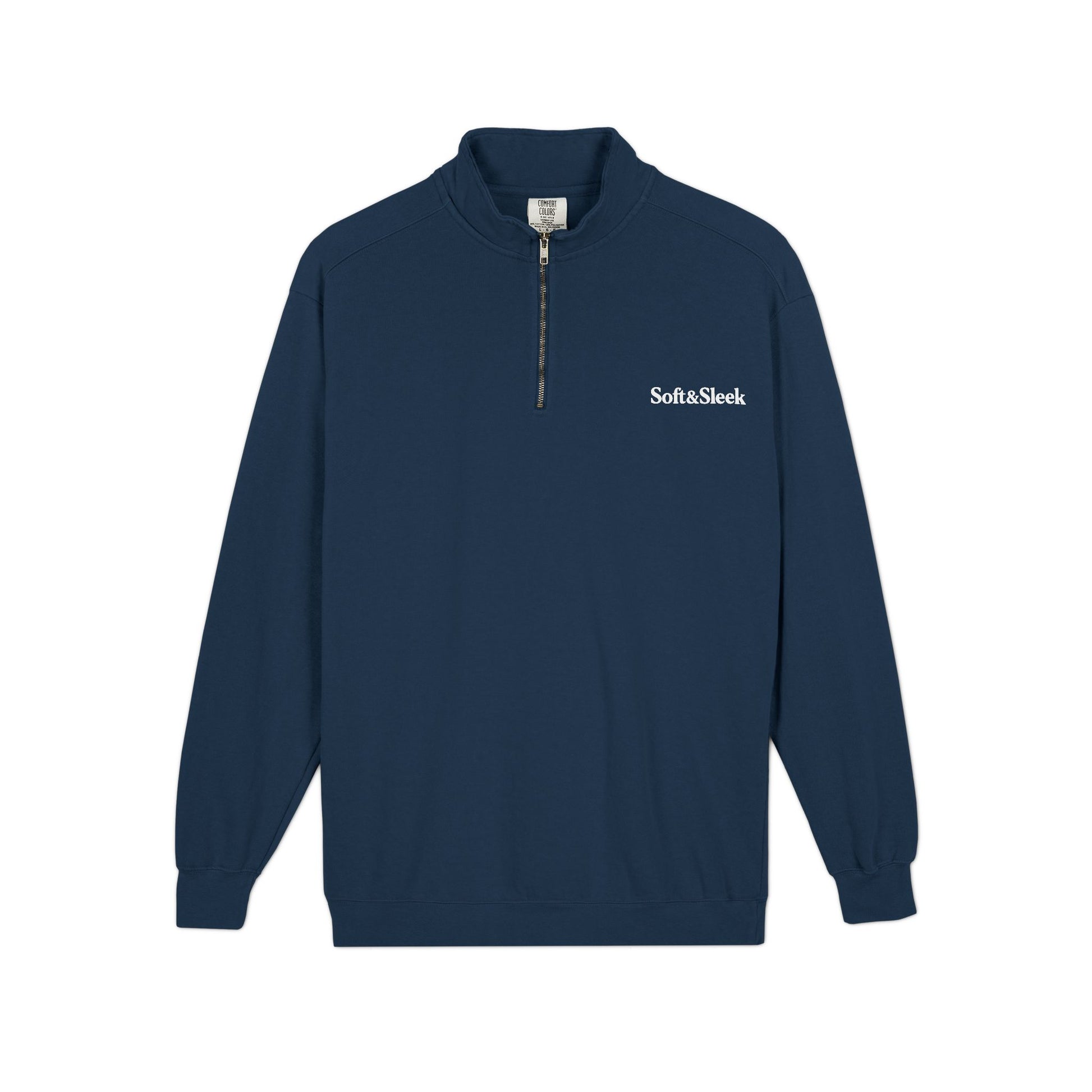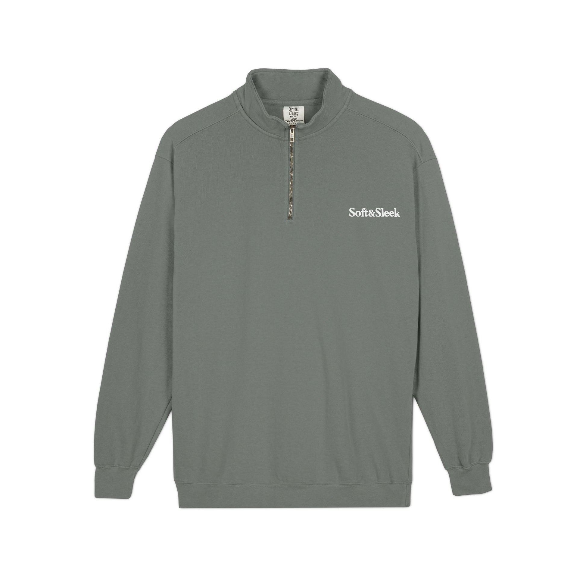 This quarter-zip sweatshirt is quiet, solid, and built for slow mornings and layered evenings. The heavy, brushed cotton feels weighty and reassuring without being stiff. A short zipper and self-lined collar let you shift between breezy and buttoned-up in a heartbeat. The relaxed cut and rolled-forward shoulders move with you—whether you’re pouring coffee, loading a bike, or lingering on the porch—while the rib cuffs and waistband hold their shape through repeats and washes. Muted, earthy tones and a small, low-profile chest logo keep the look understated so it blends into routines rather than shouting. It’s the kind of sweatshirt you reach for when you want comfort that lasts and details that quietly matter.