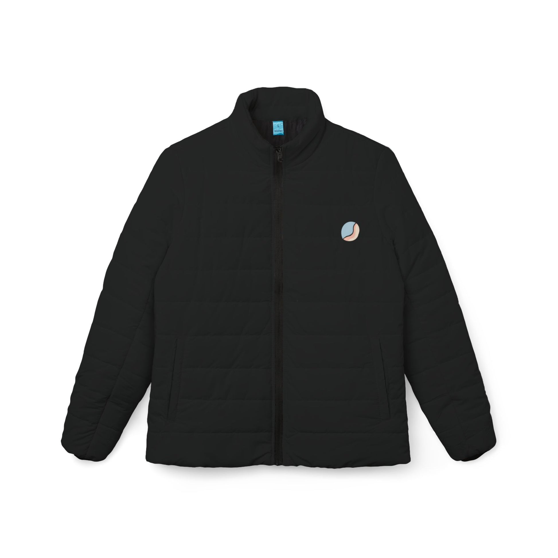Lightweight warmth with a clean, modern silhouette. This puffer jacket wraps you in soft, quilted padding while staying breathable and quick-drying — built from durable polyester that keeps its shape through daily wear. Two slanted side pockets tuck your hands or small essentials out of the wind. A smooth full-length zipper and subtle stitched lines give it an understated, versatile look that moves easily from morning commutes to weekend walks. The matte black finish and minimal embroidered emblem let your outfit stay simple and refined while the vibrant-print capability means this style can carry bold designs when you want them.